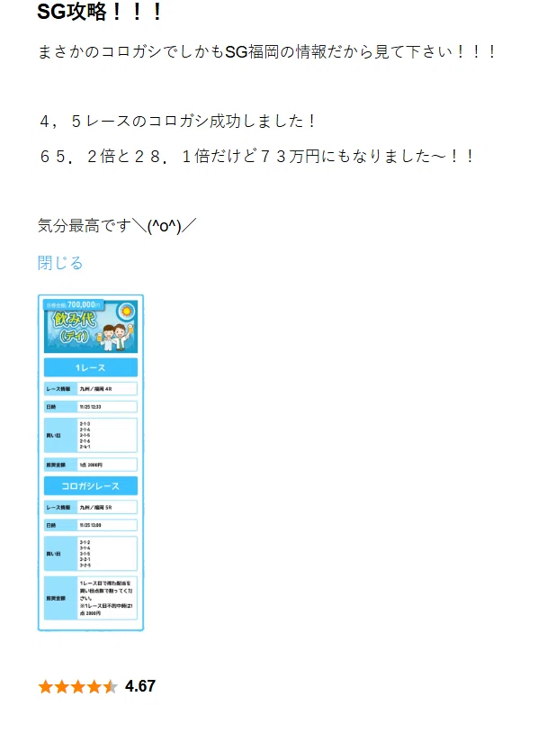 SGで2レースコロガシ成功で73万円はクチコミ見ても分かる通り、万歳をしたくなっちゃいますよね🤣