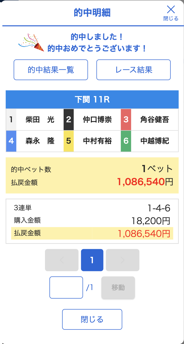 5ー1ー2の舟券当たりましたよ!しかも42.1の美味しい配当で4万円のいいお小遣いです💰