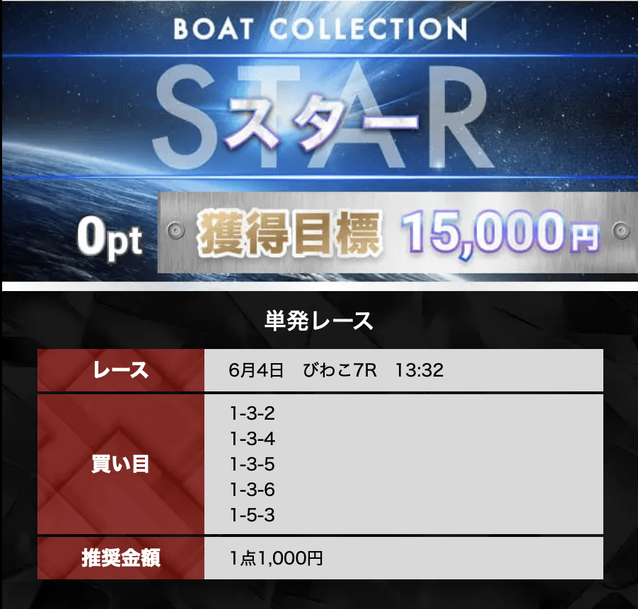 【優良】BOAT COLLECTION(ボートコレクション) 4.29 7 販売業者 ボートコレクション運営事務局 販売責任者 白石 誠 所在地 東京都港区虎ノ門1-17-1 電話番号 050-8894-4683 電話受付時間 平日10:00~18:00 問合せ受付メールアドレス info@boat-raceyosou.net タグ 優良 公式サイトはこちら 総合得点 4.29 7 的中率 4.29 配当額 4.29 信頼度 4.29 クチコミ一覧 7 使った感想・・・ めちゃ当たるし回収率いい たぶんここは低配当のレースはあまり狙わないかな? プラスになるレース選んでいる印象 続きを読む 閉じる AK 4.33 2025.06.14 このクチコミは参考になりましたか? はい 0 新しいサイトですかね? 取り急ぎ当たったのでコメント 1番のりしました(*^^)v 続きを読む 閉じる AK 4.33 2025.06.04 このクチコミは参考になりましたか? はい 0 12 クチコミを書く 【優良】BOAT COLLECTION(ボートコレクション)返信をキャンセルする。 ニックネーム任意 的中率必須 星の数をお選びください 配当額必須 星の数をお選びください 信頼度必須 星の数をお選びください クチコミのタイトル必須 クチコミ内容必須 添付ファイル アップロードファイルの最大サイズ: 100 MB。 画像 をアップロードできます。 ここにファイルをドロップ クチコミ投稿の注意点 誤解を生む表現や過激な言い回し、誹謗中傷などはご遠慮ください。最悪の場合、名誉毀損と判断される可能性もございます。なお、すべてのクチコミがサイト上に表示されるとは限りません。競艇リポート運営者の承認後に反映されますので、あらかじめご了承ください。