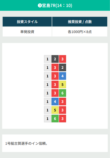 3 ランキング 【優良】GALAXY(ギャラクシー) 4.56 53 販売業者 GALAXY運営委員会 販売責任者 大原 麻衣 所在地 東京都港区芝大門2-4-5 電話番号 03-6284-2725 電話受付時間 メールのみ年中無休24時間(電話対応ナシ) 問合せ受付メールアドレス info@galaxy-boatrace.com 公式サイトはこちら 総合得点 4.56 53 的中率 4.51 配当額 4.58 信頼度 4.60 クチコミ一覧 53 的中率100% 今日のメルマガで届いたから登録してみたら4レース全部当たって7万2600円の払い戻しにもなった! まじで当たるんだなと 今までへんなサイトにしか登録してなかったけどここはホンモノだよ😢 続きを読む 閉じる AK 4.67 2025.08.29 このクチコミは参考になりましたか? はい 0 安定◎ 週明けも的中率安定していますね◎ 42.5倍当たって無事に回収できました^^ 続きを読む 閉じる AK 4.00 2025.08.25 このクチコミは参考になりましたか? はい 0 激ウマ2レース攻略 鳴門の2レース連続でコロガシできましたよん! プライムの情報代6万でしたけど74万8440円の回収ができました◎ 続きを読む 閉じる AK 4.33 2025.08.22 このクチコミは参考になりましたか? はい 0 ギャラクシーもすごいですよ MUGENもすごなと思いましたがギャラクシーも以前メルマガ来て登録してからかなり勝たせてもらいましたよ! コロガシで50万円は余裕で狙えました! という自慢をすみません💦(笑) 続きを読む 閉じる AK 4.33 2025.08.21 このクチコミは参考になりましたか? はい 0 当たりますねえ~ ここは良く当たりますよお! 的中率もいいけどちゃんと回収できるから信頼しています 続きを読む 閉じる AK 4.33 2025.08.02 このクチコミは参考になりましたか? はい 0 123…11 クチコミを書く 【優良】GALAXY(ギャラクシー)返信をキャンセルする。 ニックネーム任意 的中率必須 星の数をお選びください 配当額必須 星の数をお選びください 信頼度必須 星の数をお選びください クチコミのタイトル必須 クチコミ内容必須 添付ファイル アップロードファイルの最大サイズ: 100 MB。 画像 をアップロードできます。 ここにファイルをドロップ クチコミ投稿の注意点 誤解を生む表現や過激な言い回し、誹謗中傷などはご遠慮ください。最悪の場合、名誉毀損と判断される可能性もございます。なお、すべてのクチコミがサイト上に表示されるとは限りません。競艇リポート運営者の承認後に反映されますので、あらかじめご了承ください。
