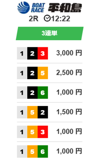 1-5-2で無事に的中からの3万2250円ゲットですわ!