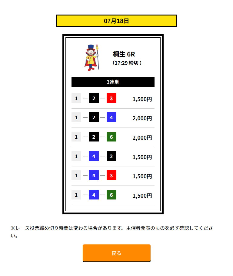 良く当たるという噂の船客万来の予想が当たりました!