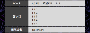 この予想1-2-6で当たっているんですよ!!!当たると思ったから1点2000円で買いましたけど3万5200円で賭けました!