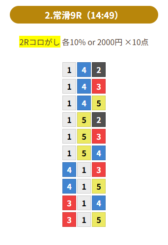 これ多摩川4レースと常滑9レースのコロガシでした(念のため)