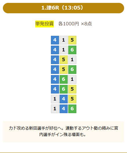 この予想でちなみに取れましたので!