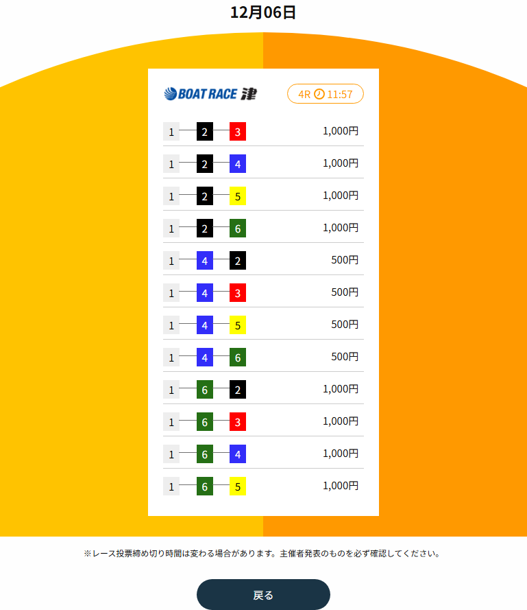 自分の予想だと1-3ー全だったから競艇タッグの舟券当たってよかった💦