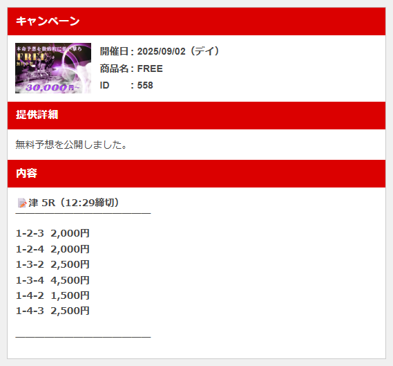 なんかここの予想点数は少ないですけど的中率微妙なんですよ